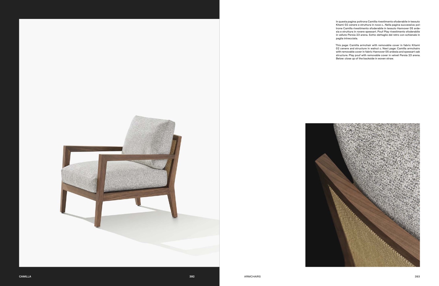 02 cenere and structure in walnut c. Next page: Camilla armchairs