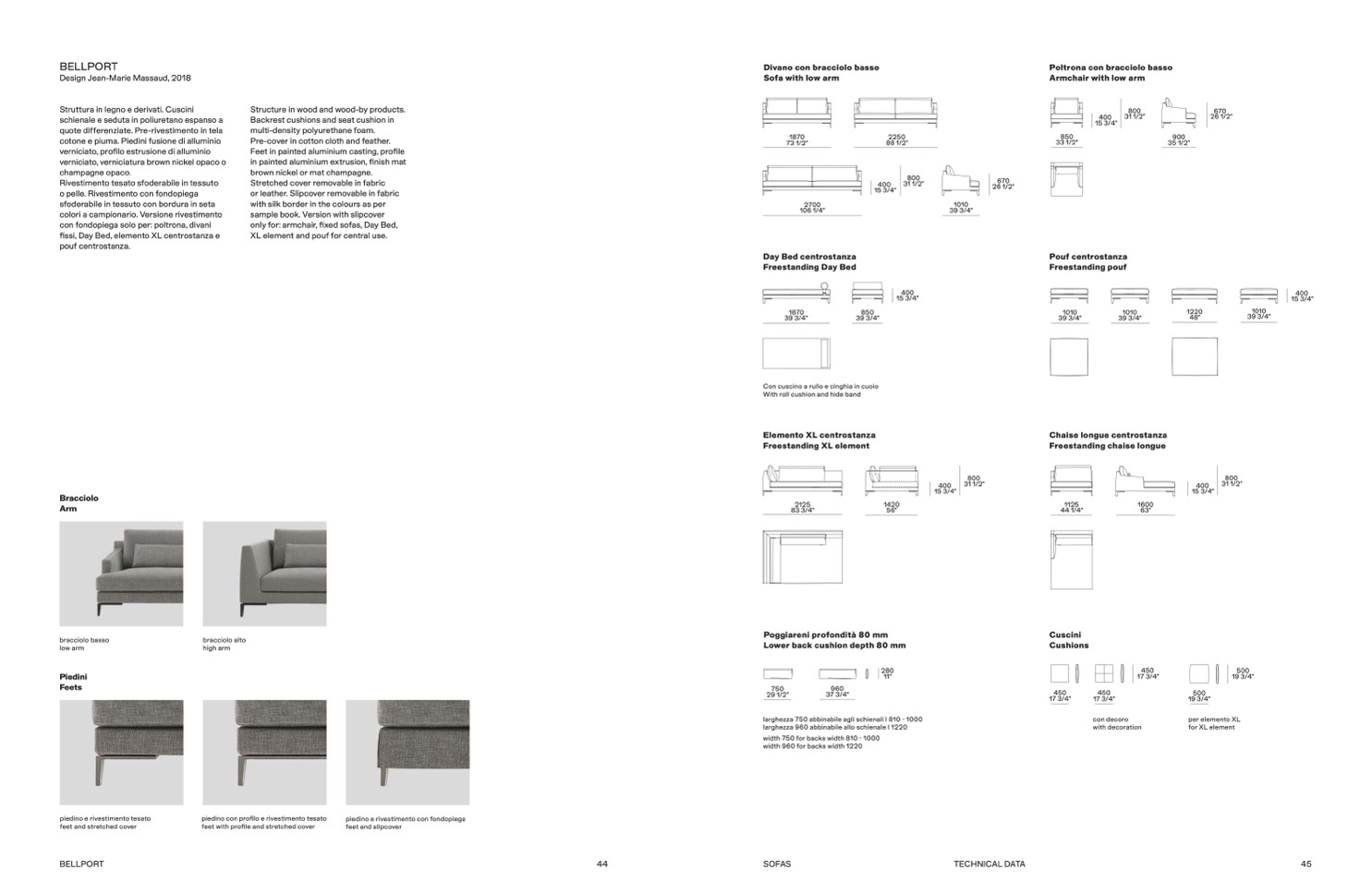 larghezza 750 abbinabile agli schienali l 810 - 1000