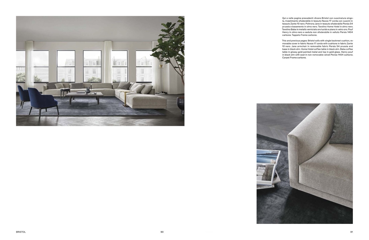 Qui e nelle pagine precedenti: divano Bristol con cuscinatura singo-