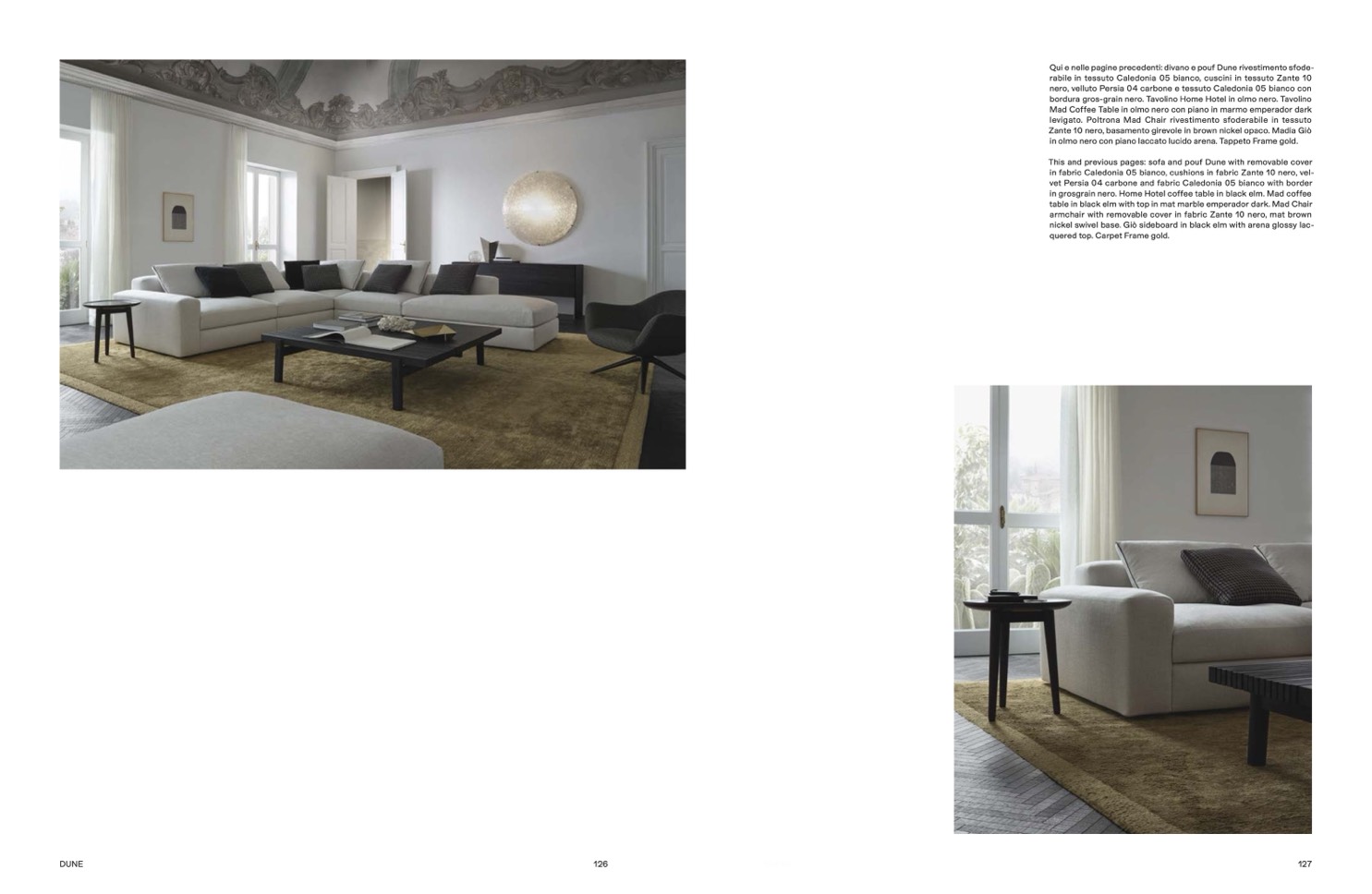 This and previous pages: sofa and pouf Dune with removable cover