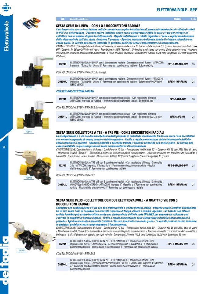in PVC e in polipropilene - Possono essere installata anche con le elettrovalvole della 6a serie a 4 vie per ottenere un