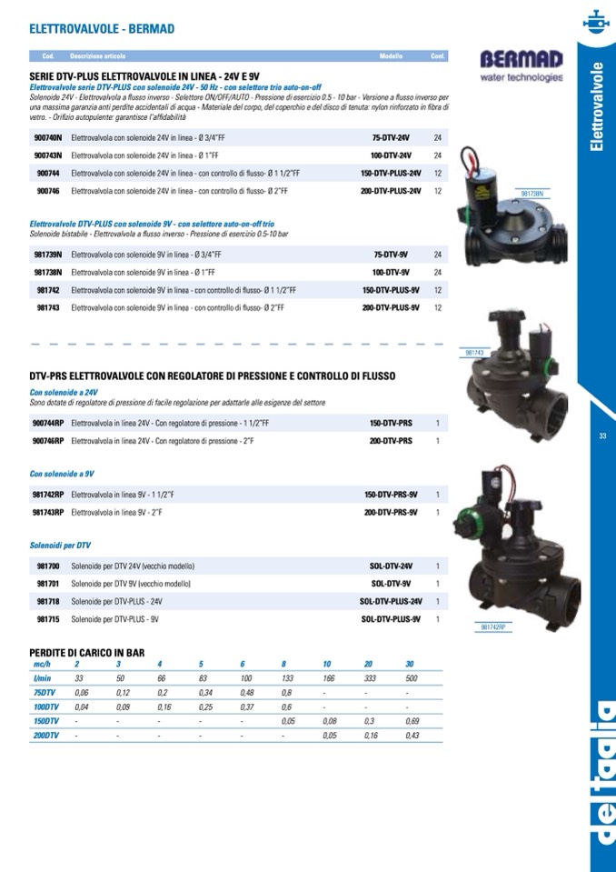 Elettrovalvole DTV-PLUS con solenoide 9V - con selettore auto-on-off trio