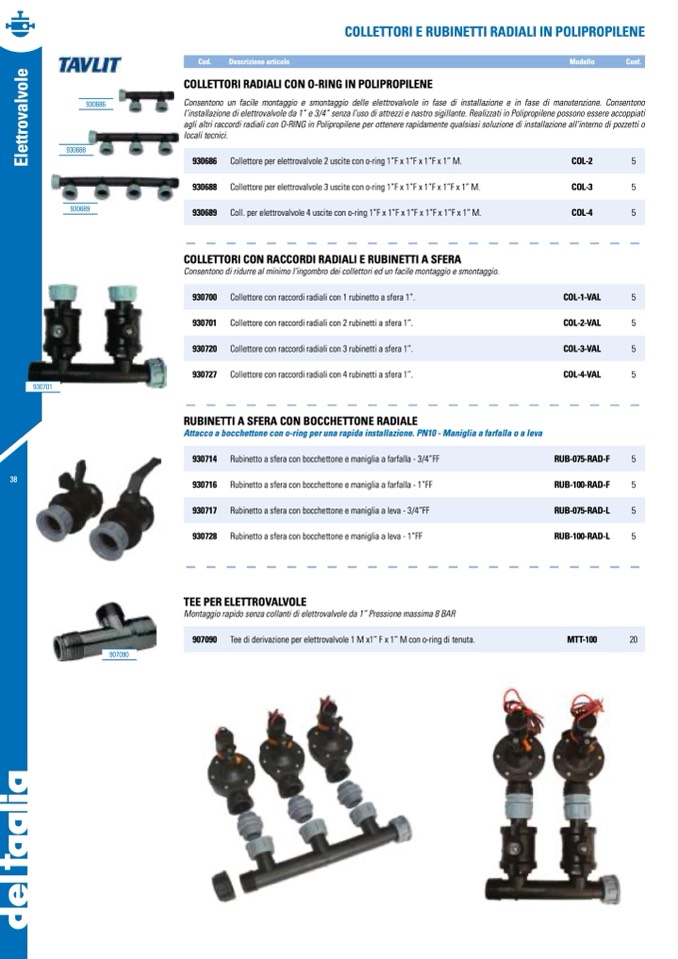 l’installazione di elettrovalvole da 1” e 3/4” senza l’uso di attrezzi e nastro sigillante. Realizzati in Polipropilene possono essere accoppiati