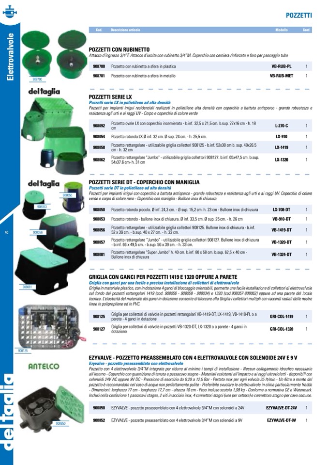 Pozzetti per impianti irrigui con coperchio a battuta antisporco - grande robustezza e resistenza agli urti e ai raggi UV. Coperchio di colore