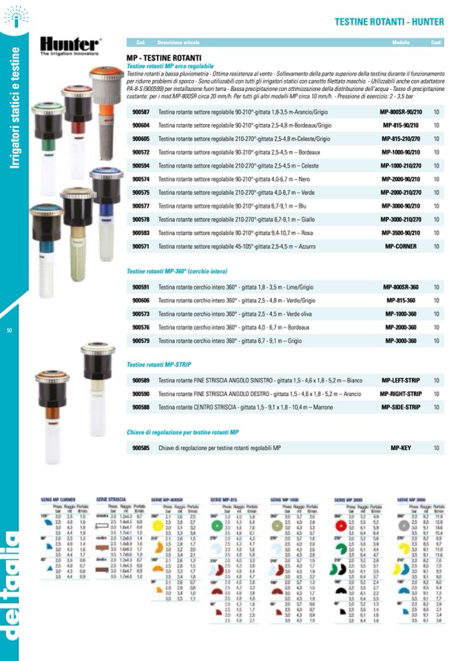 costante: per i mod.MP-800SR circa 20 mm/h. Per tutti gli altri modelli MP circa 10 mm/h. - Pressione di esercizio: 2 - 3,5 bar