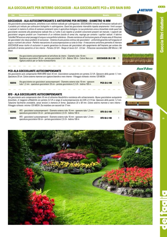 Ala gocciolante auto compensante diam.16 mm di altissima flessibilità e resistenza allo schiacciamento. Nuovo gocciolatore autopulente