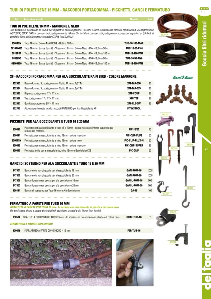 Picchetto a clip per ala gocciolante, tubo 16mm e Gocciolatori XB