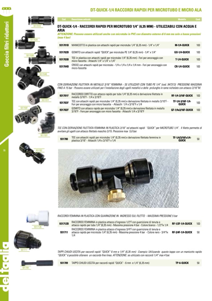 ATTENZIONE: Possono essere utilizzati anche con microtubo in PVC con diametro esterno di 6 mm ma solo a basse pressioni