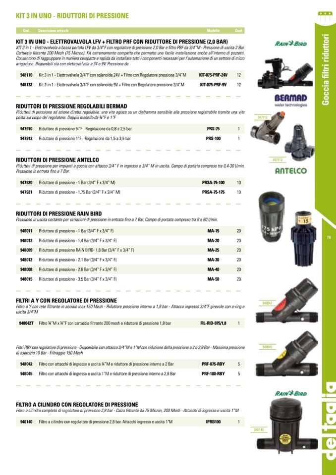 filtro PRF da 3/4”M - Pressione di uscita 2 Bar.