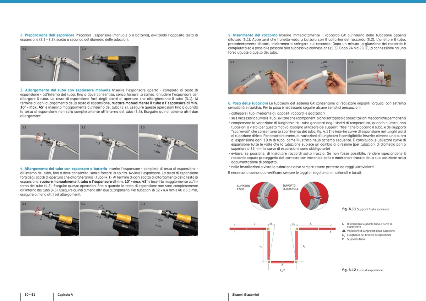 “scorrevoli” che consentono lo scorrimento del tubo, fig. 4.11) e inserire curve di espansione nei lunghi tratti