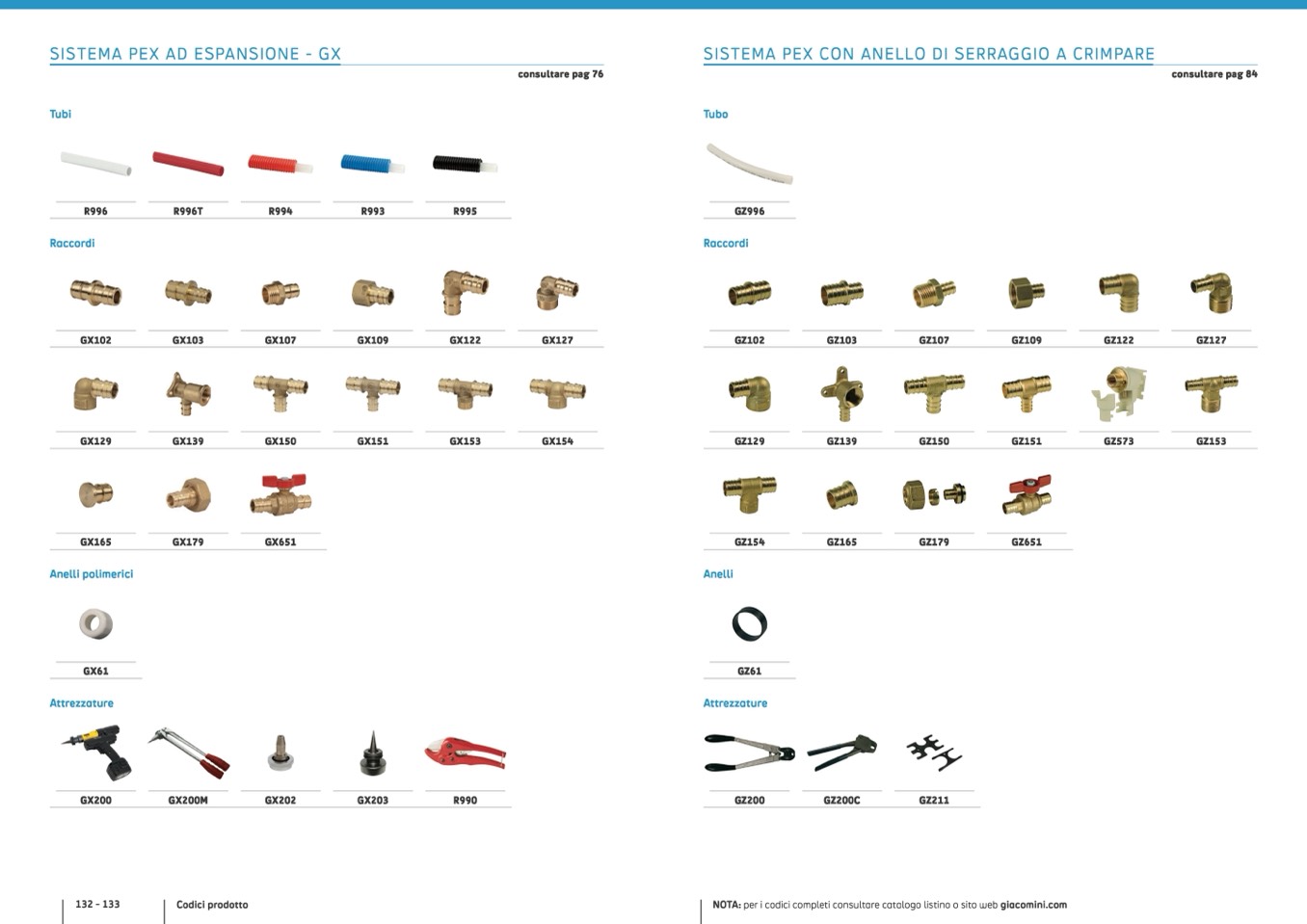 NOTA: per i codici completi consultare catalogo listino o sito web giacomini.com