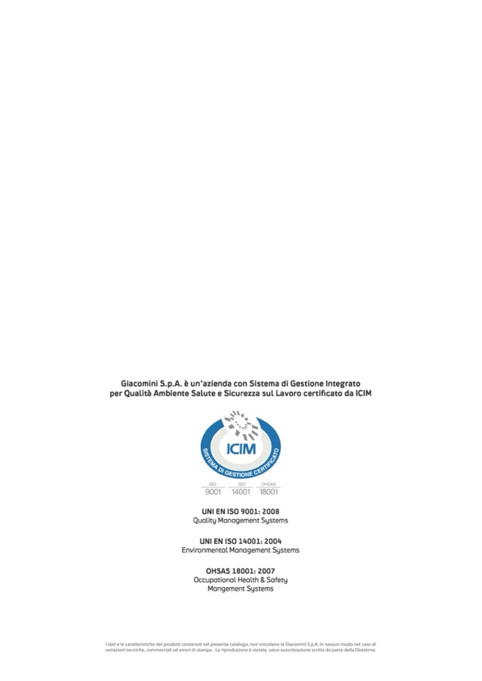 I dati e le caratteristiche dei prodotti contenuti nel presente catalogo, non vincolano la Giacomini S.p.A. in nessun modo nel caso di