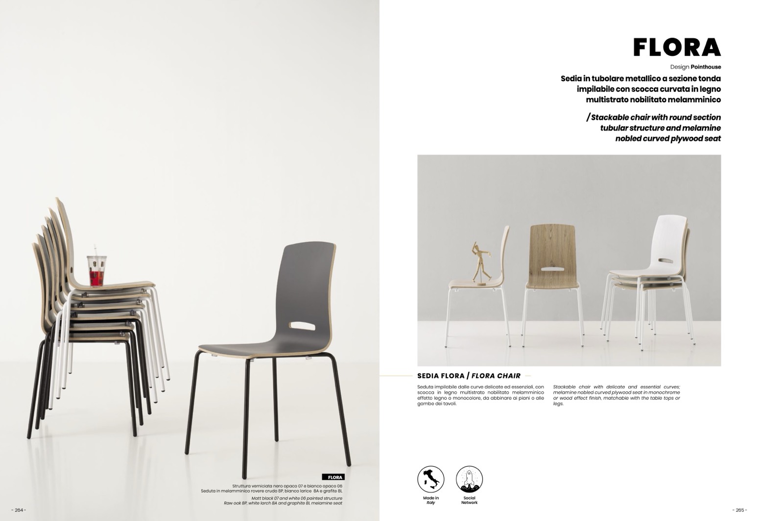 Seduta in melamminico rovere crudo 8P, bianco larice 8A e grafite 8L