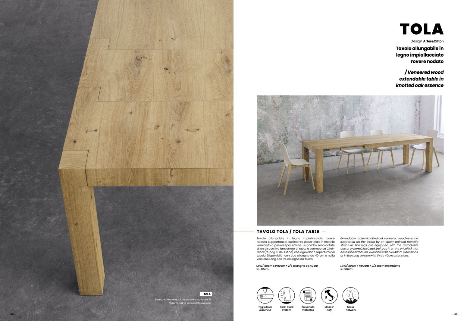 tavolo. Disponibile con due allunghe da 40 cm e nella