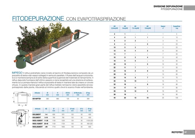 pozzetto di testa e dai vassoi collegati in serie e/o parallelo. Il flusso dell’acqua è orizzonta-