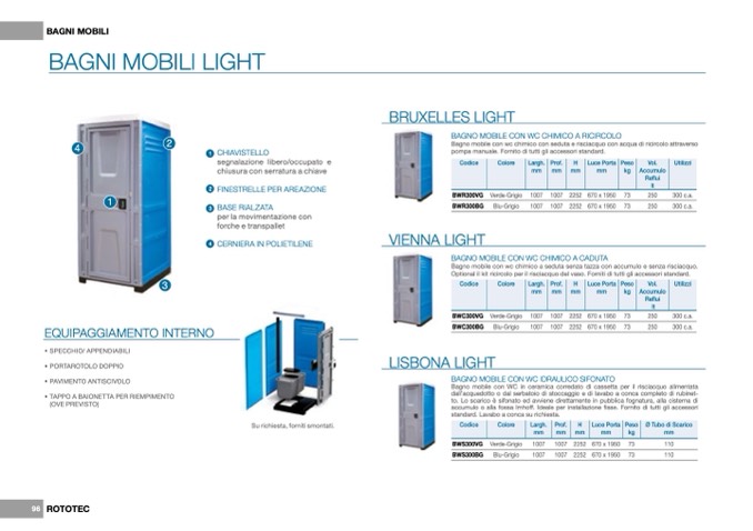 Bagno mobile con wc chimico a seduta senza tazza con accumulo e senza risciacquo.