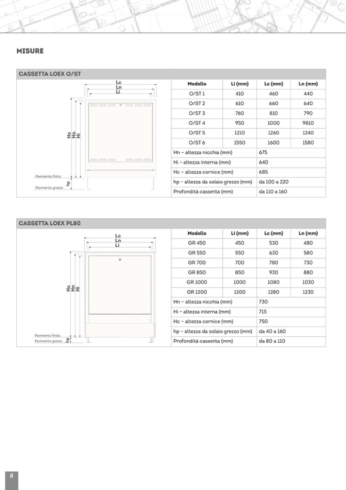 hp – altezza da solaio grezzo (mm)