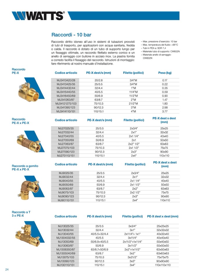– Max. pressione d’esercizio: 10 bar