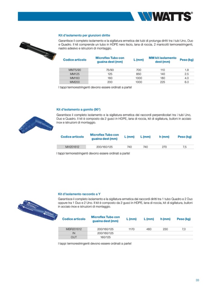 e Quadro. Il kit comprende un tubo in HDPE nero liscio, lana di roccia, 2 manicotti termorestringenti,