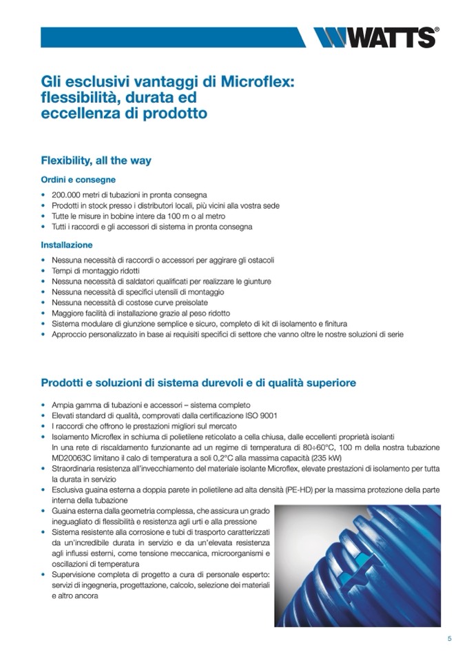 • Isolamento Microflex in schiuma di polietilene reticolato a cella chiusa, dalle eccellenti proprietà isolanti