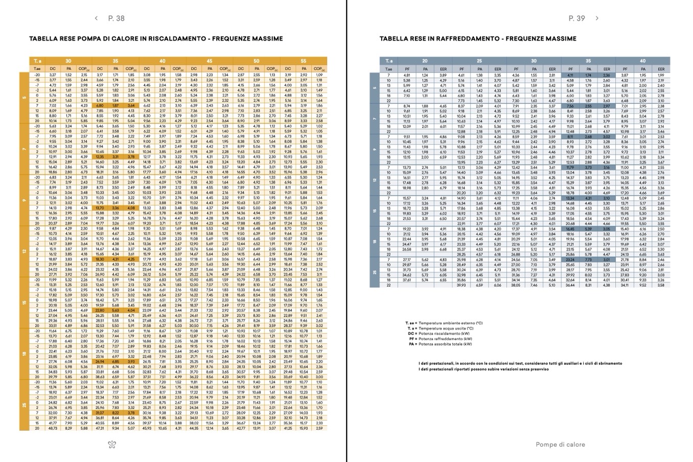 I dati prestazionali, in accordo con le condizioni sui test, considerano tutti gli ausiliari e i cicli di sbrinamento