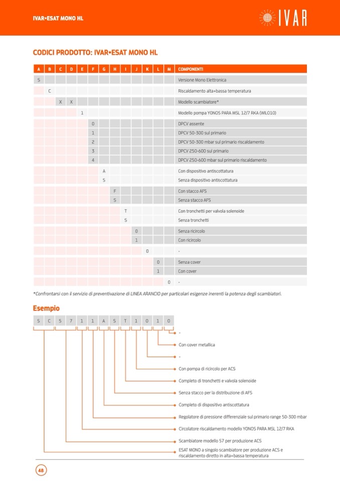 *Confrontarsi con il servizio di preventivazione di LINEA ARANCIO per particolari esigenze inerenti la potenza degli scambiatori.