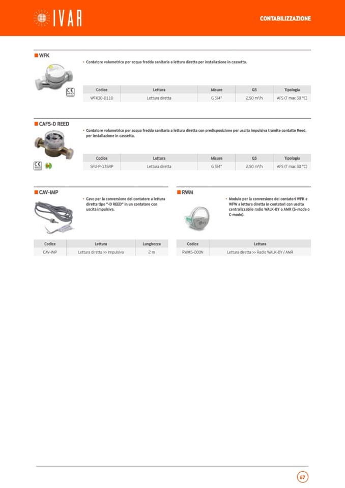 • Contatore volumetrico per acqua fredda sanitaria a lettura diretta per installazione in cassetta.