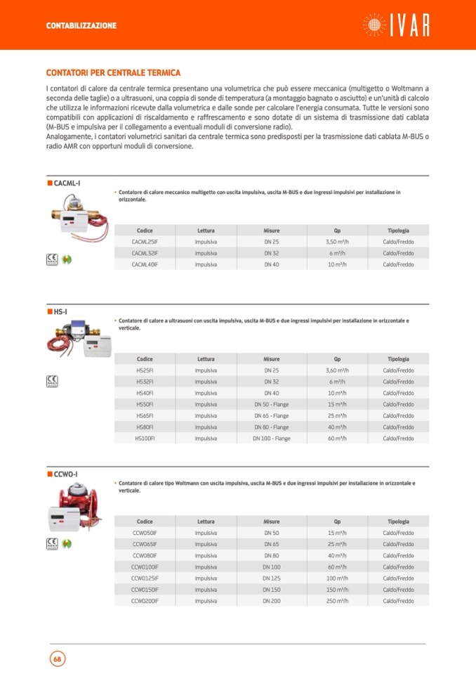 Analogamente, i contatori volumetrici sanitari da centrale termica sono predisposti per la trasmissione dati cablata M-BUS o