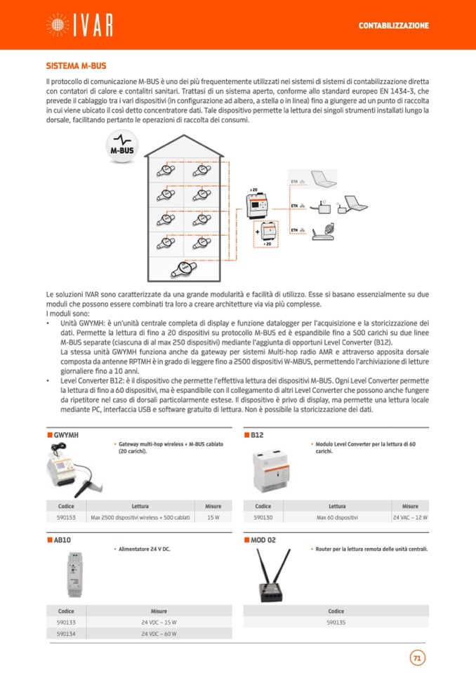 dati. Permette la lettura di fino a 20 dispositivi su protocollo M-BUS ed