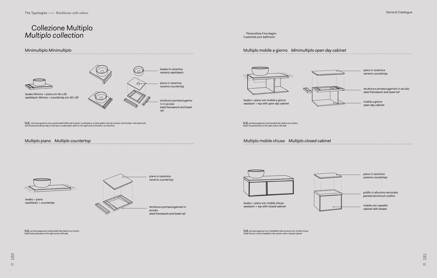N.B. i portasciugamani sono posizionabili affiancati al piano o sottopiano, sia lato destro che lato sinistro che frontale \ the towel rails