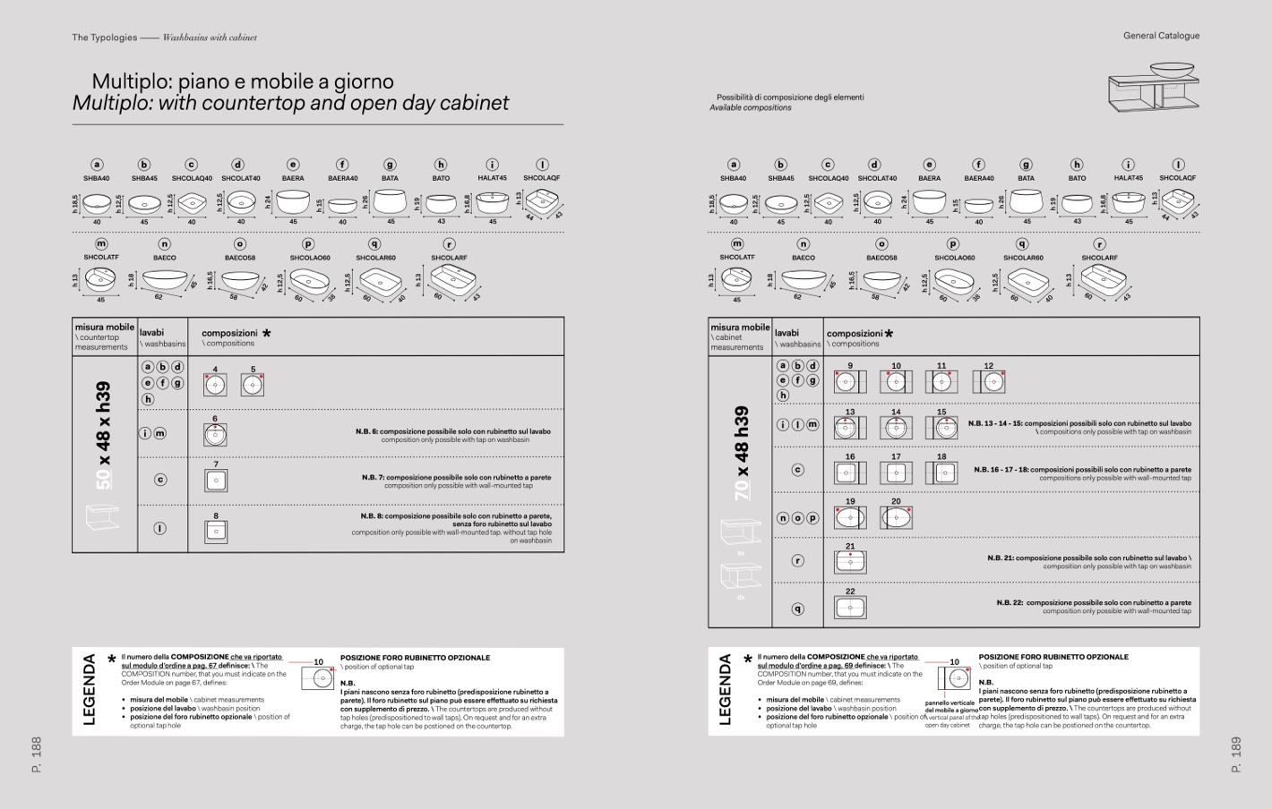 N.B. 16 - 17 - 18: composizioni possibili solo con rubinetto a parete