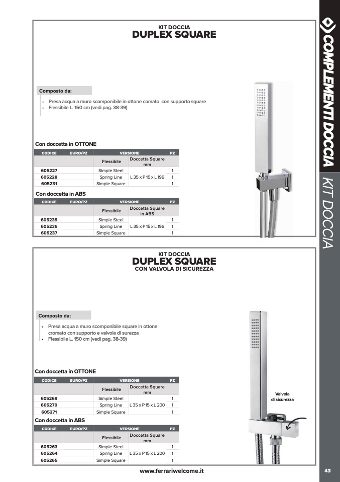 • Flessibile L. 150 cm (vedi pag. 38-39)