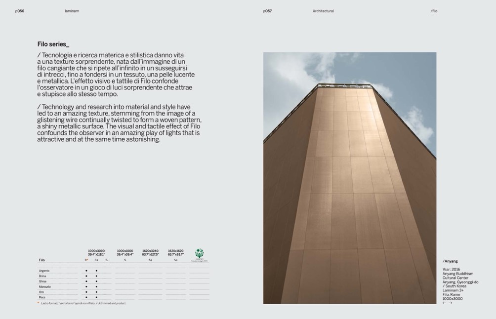 a shiny metallic surface. The visual and tactile effect of Filo