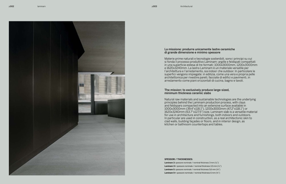 Laminam 3: spessore nominale / nominal thickness 3 mm (
