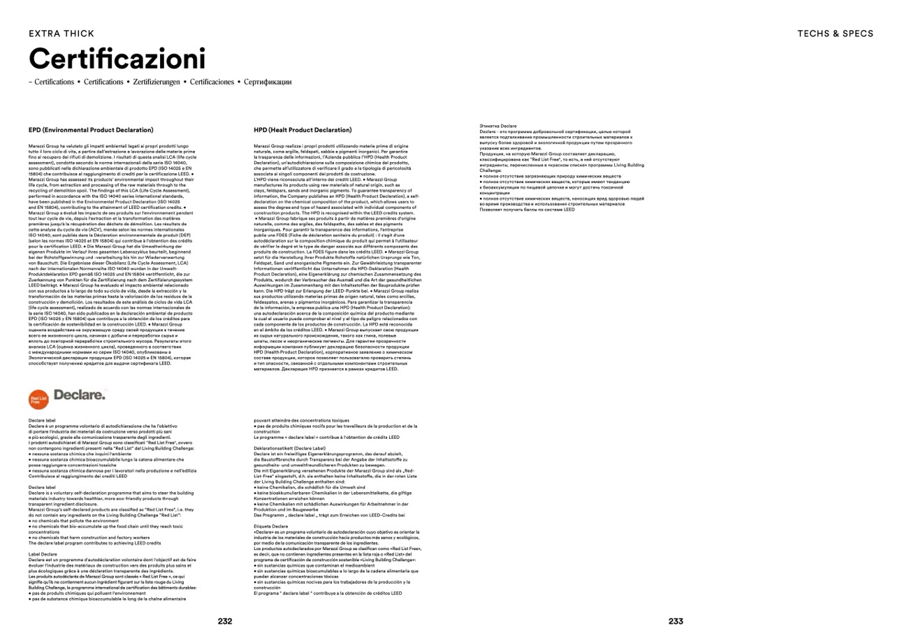 Marazzi Group’s self-declared products are classified as “Red List Free”, i.e. they