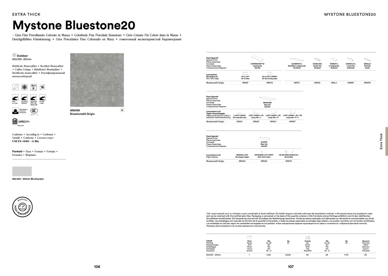 and can be matched with the rectified plain tiles. Packaging is calculated on the basis of the quantity ordered. • Alle Formteile sind auf Anfrage erhältlich und mit den rektifizierten