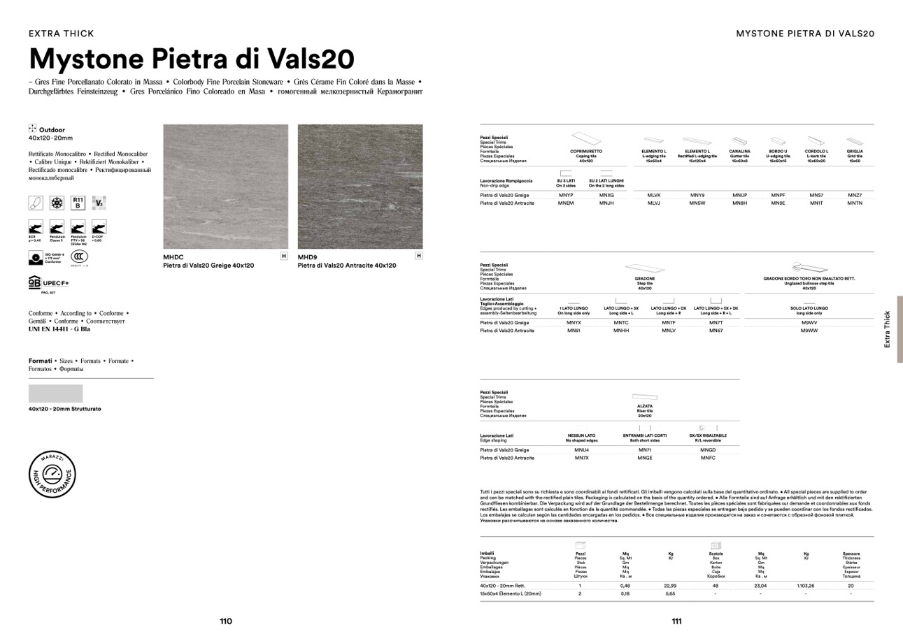 and can be matched with the rectified plain tiles. Packaging is calculated on the basis of the quantity ordered. • Alle Formteile sind auf Anfrage erhältlich und mit den rektifizierten