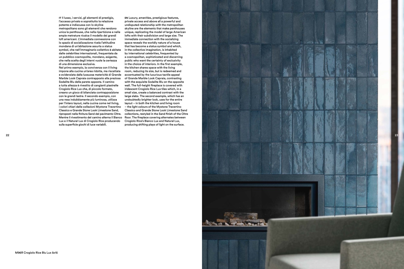 iridescent Crogiolo Rice Lux tiles which, in a