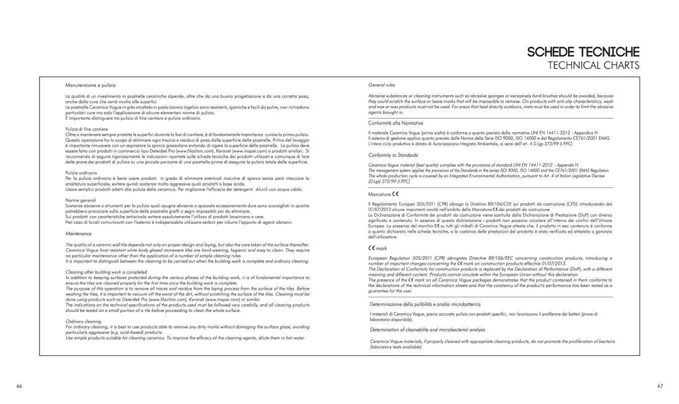 Ceramica Vogue material (best quality) complies with the provisions of standard UNI EN 14411-2012 – Appendix H.