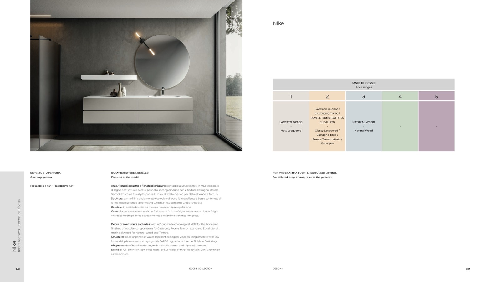 finishes; of wooden conglomerate for Castagno, Rovere Termotrattato and Eucalipto; of