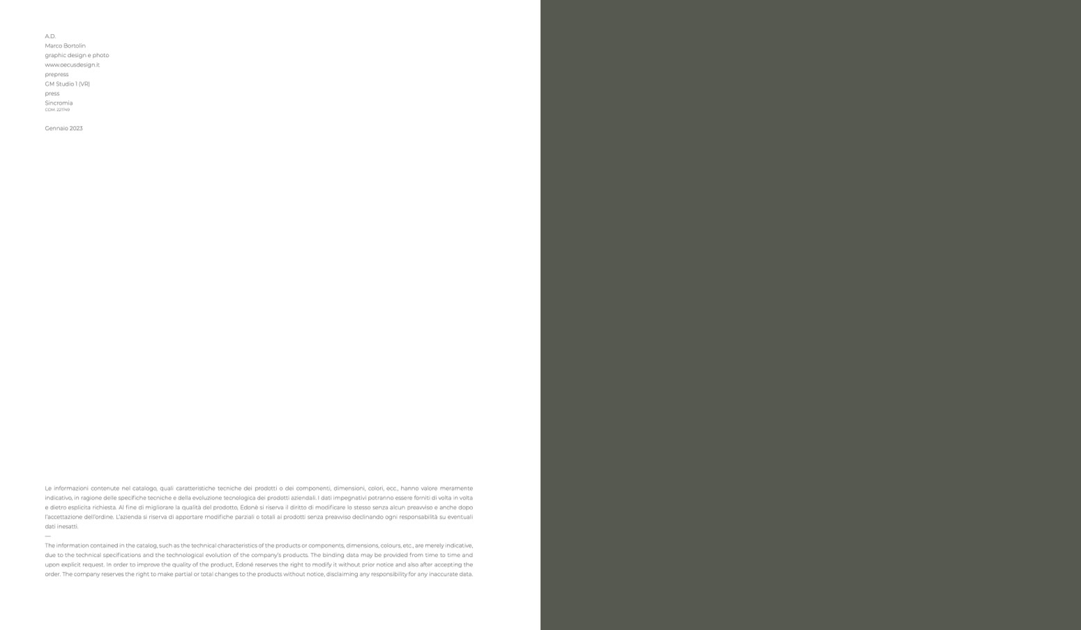 Le informazioni contenute nel catalogo, quali caratteristiche tecniche dei prodotti o dei componenti, dimensioni, colori, ecc., hanno valore meramente