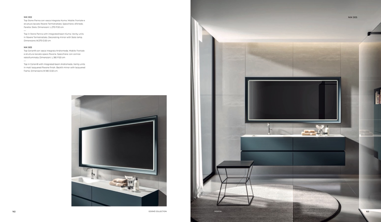 in matt lacquered Pavone finish. Backlit mirror with lacquered