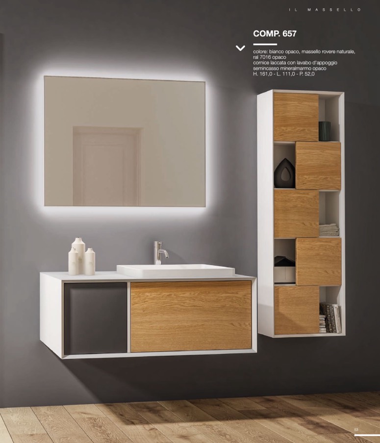 colore: bianco opaco, massello rovere naturale,