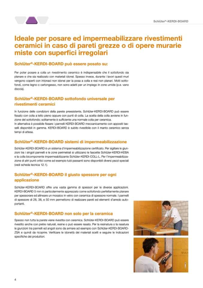 selli disponibili in gamma. KERDI-BOARD è subito rivestibile con il manto ceramico senza