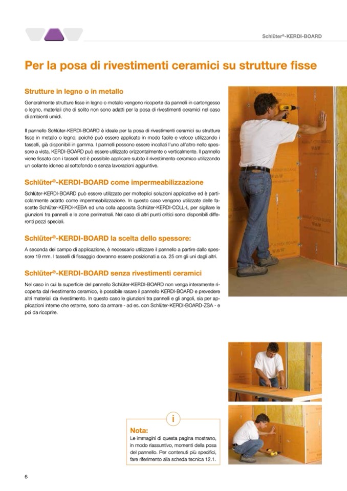 sore a vista. KERDI-BOARD può essere utilizzato orizzontalmente o verticalmente. Il pannello
