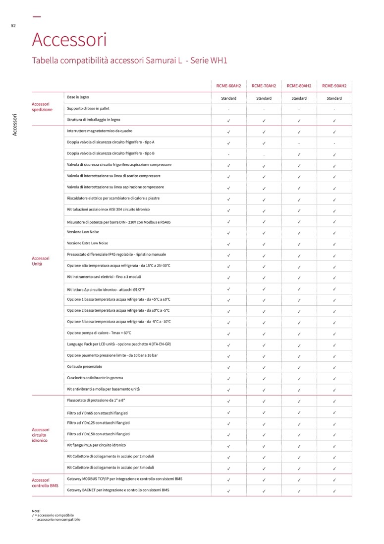 ✓ = accessorio compatibile