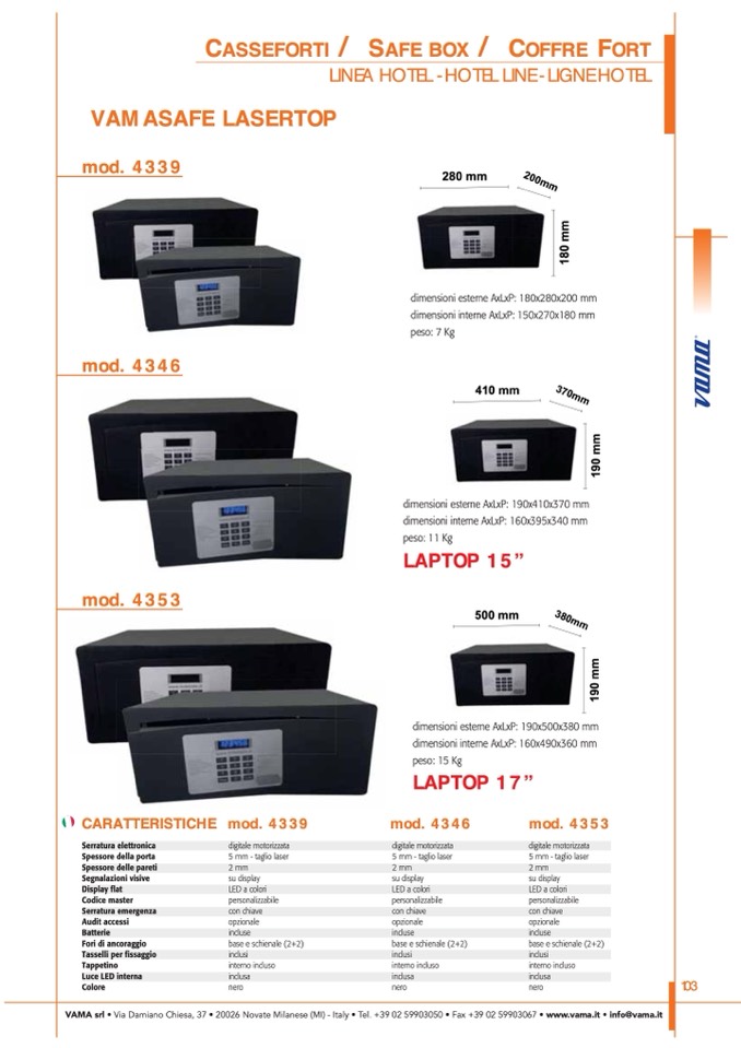 VAMA srl • Via Damiano Chiesa, 37 • 20026 Novate Milanese (MI) - Italy • Tel. +39 02 59903050 • Fax +39 02 59903067 • www.vama.it • info@vama.it