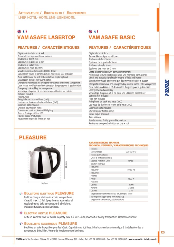 VAMA srl • Via Damiano Chiesa, 37 • 20026 Novate Milanese (MI) - Italy • Tel. +39 02 59903050 • Fax +39 02 59903067 • www.vama.it • info@vama.it