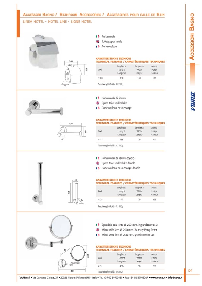 VAMA srl • Via Damiano Chiesa, 37 • 20026 Novate Milanese (MI) - Italy • Tel. +39 02 59903050 • Fax +39 02 59903067 • www.vama.it • info@vama.it