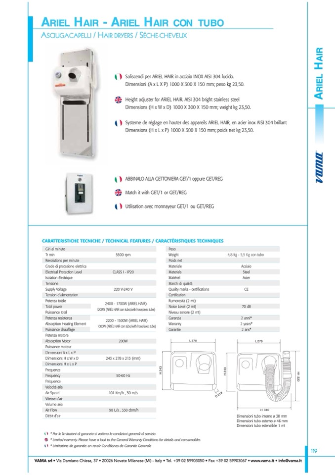 VAMA srl • Via Damiano Chiesa, 37 • 20026 Novate Milanese (MI) - Italy • Tel. +39 02 59903050 • Fax +39 02 59903067 • www.vama.it • info@vama.it